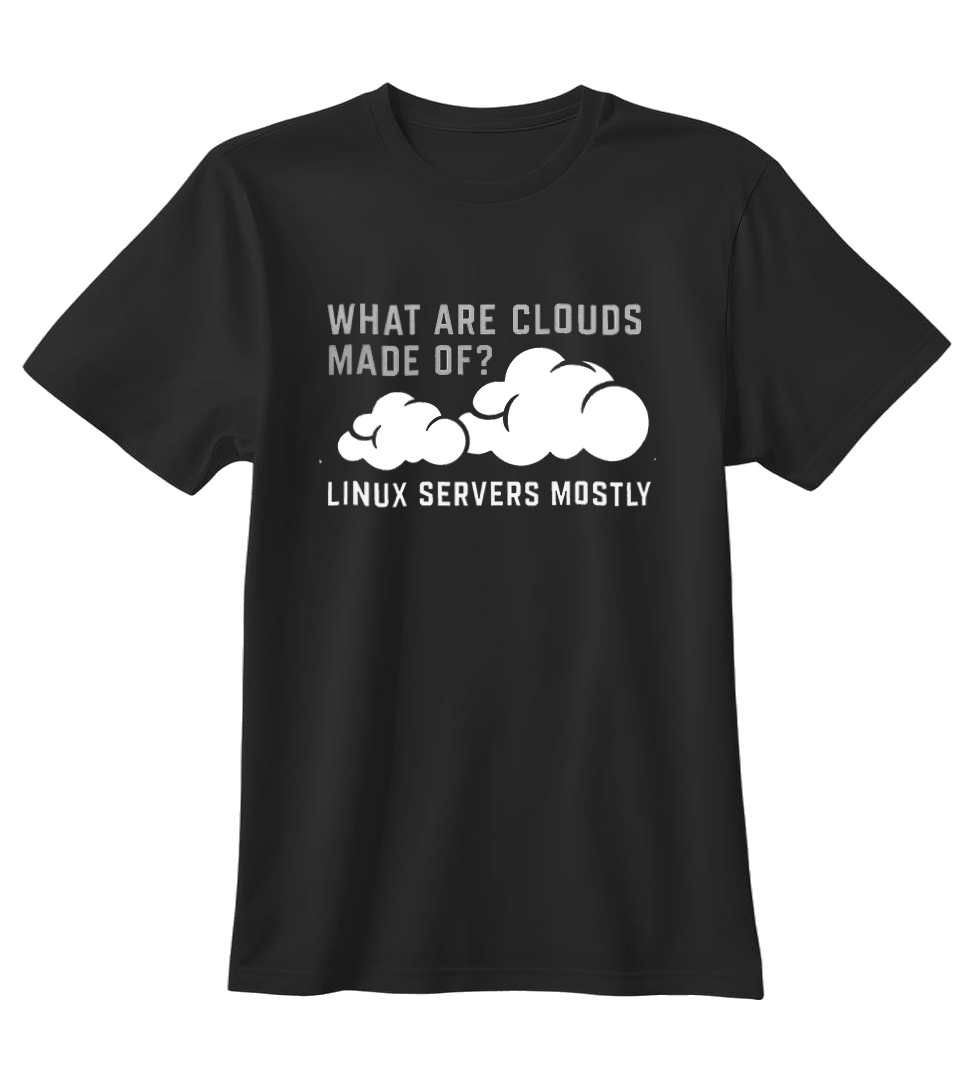 Vtipný cloud/DevOps motív s textom What are clouds made of? Linux servers mostly – tričko pre všetkých adminov, devopsákov a linuxákov.
